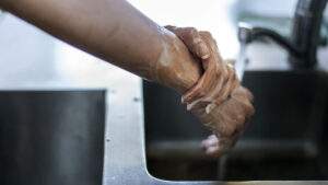 The sink must have hot and cold running water and be easy to access for all team members.